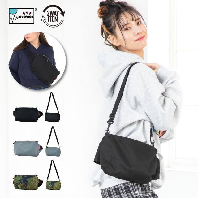 メール便送料無料 アヴェンチュラ ウエストバッグ ショルダーポーチ 撥水 ナイロン 大容量 ロゴ 2way 黒 レディース メンズ 男女兼用 大人 女性 大学生 女子 男子 高校生 中学生 ワンショルダーバッグ サブバッグ かっこいい きれいめ 自転車 バイク 人気 ブランド
