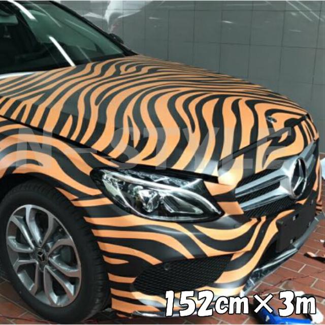 カーラッピングシート 152cm×3m トラ柄艶あり 虎柄ラッピングフィルム タイガー 耐熱耐水曲面対応裏溝付 カッティングシート サバゲー カモフラージュ