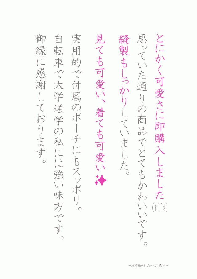 - ちょっと薄いのがきになるけど、かわいいから良し