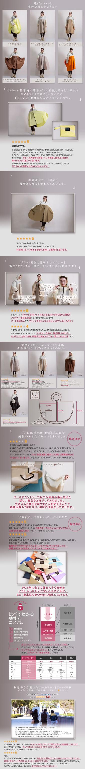 【サイズ】 ・S-L対応 フリーサイズ/着丈(前)82cm / 着丈(後)95cm / 身幅150cm / 収納ポーチ 縦21.5cm /横25.5cm 重さ:本体:300グラム |
