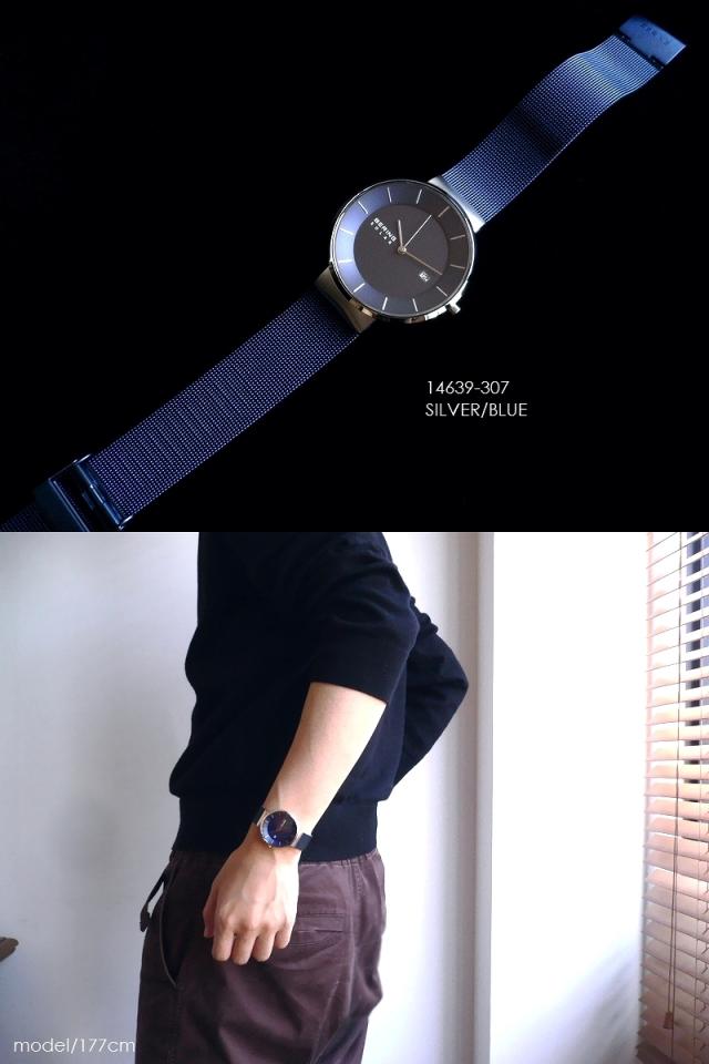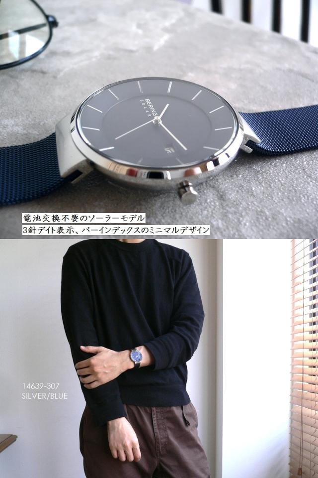 BERING ベーリング メタルバンド ソーラー 腕時計 Scandinavian Solar 14639-307 シルバー/ブルー/ネイビー