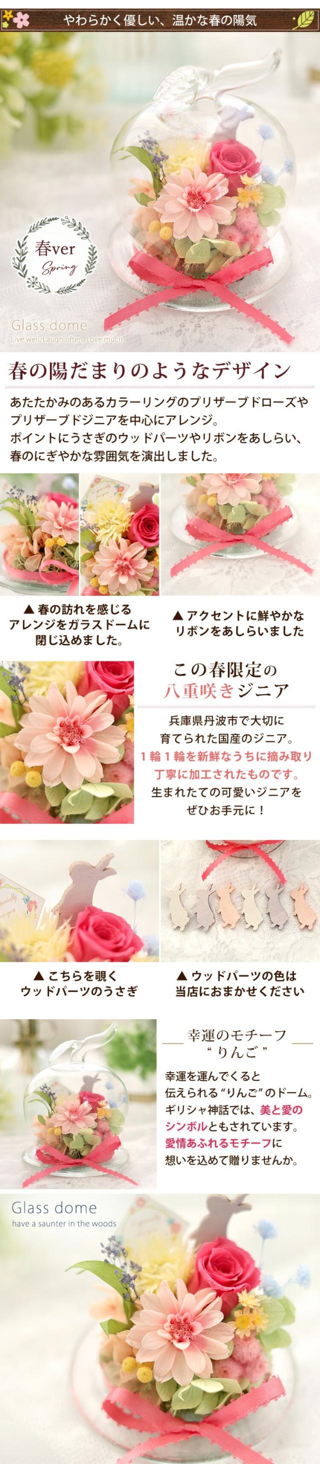 - 母の誕生日ギフトしました!! 実家に送りました♪ サイズも可愛く?お花も可愛く? うさぎののガラスドームにして大成功でした! 私もとても嬉しかったし! お店も丁寧な対応で!とても信頼できるお店でし...