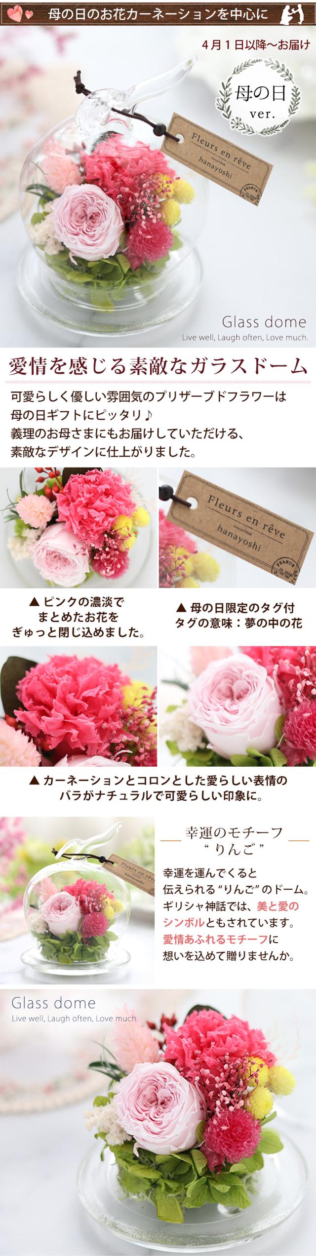 プリザーブドフラワー 幸運のモチーフ付 ガラスドーム 即日発送 バラ 結婚祝い おしゃれ ドーム型 お祝い 花 誕生日 プレゼント 女性 母 お誕生日 花 結婚祝い 結婚記念日 ブリザードフラワー ギフト 退院祝い 出産祝い インテリア 春 卒業祝い