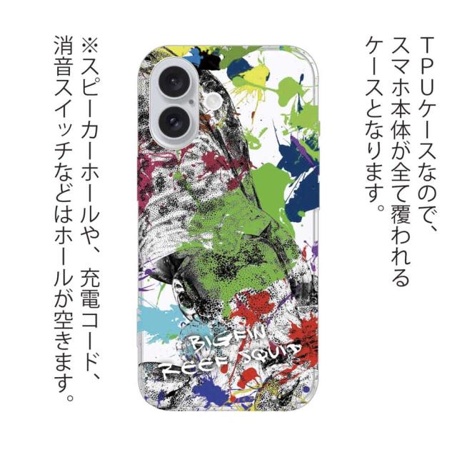 | ケースの素材について | 側面はゴムのように柔らかいTPU素材で、スマホ本体を守ります。万が一の落下でもケースが割れることがなく、耐久性の高いケースとなります。クリア(透明)のTPUケースにプリントしていますので、スマホ本体のカラーを活かしながらデザインケースが楽しめます。 |