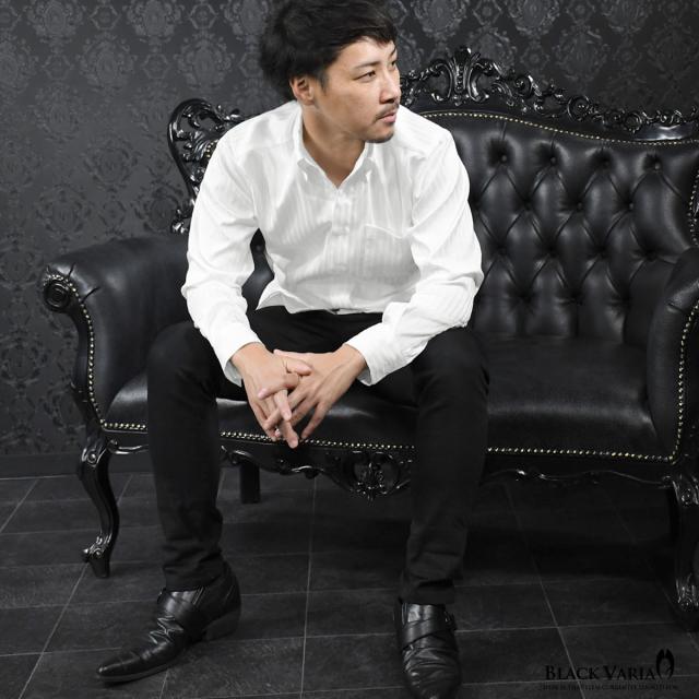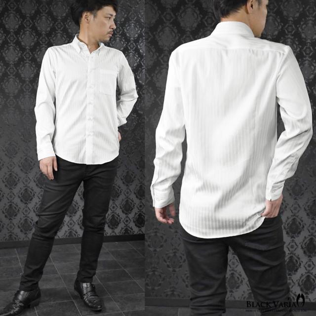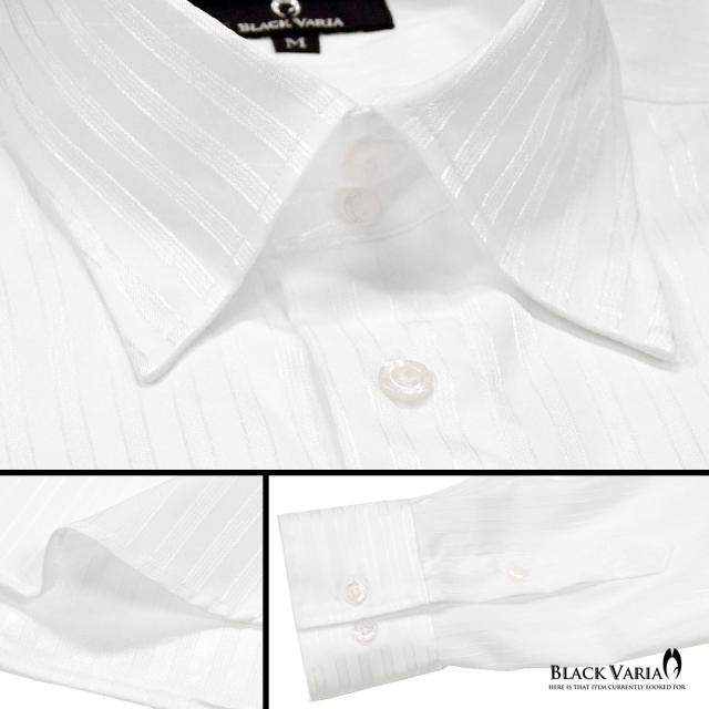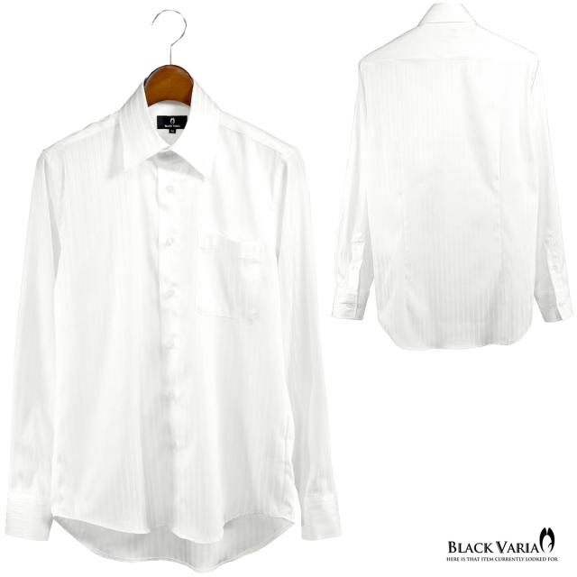 サテンシャツ ドレスシャツ ドゥエボットーニ ストライプ柄 レギュラーカラー 日本製 ジャガード メンズ(ホワイト白) 191850