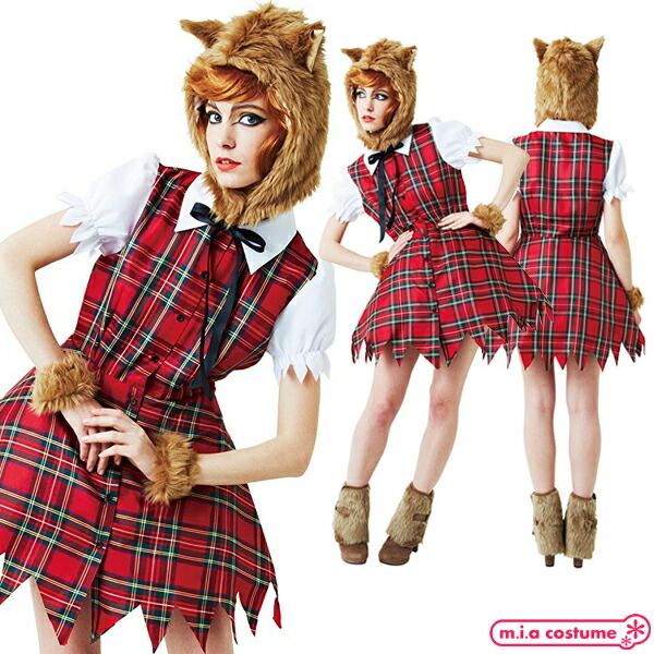 赤チェック 制服 コスチューム 仮装 変装 ハロウィン ハロウィーン パーティー イベント コスプレ衣装 人気 定番 大人サイズ キャラクター風 オオカミ WOLF おおかみ イベント ハロウィーン Halloween ポイント消化