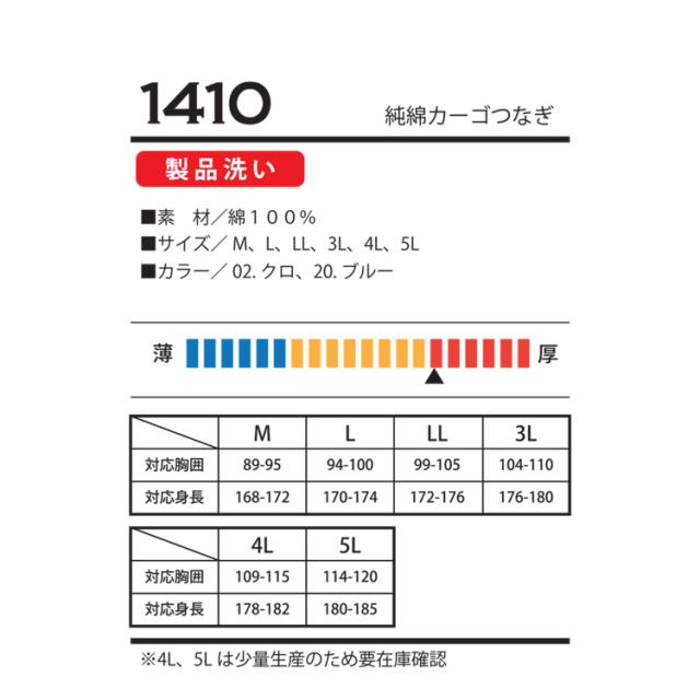 つなぎ作業服 NBトラスト 純綿カーゴつなぎ 1410