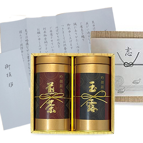 八女茶を代表するg1500円玉露とg1500円煎茶の詰め合わせで