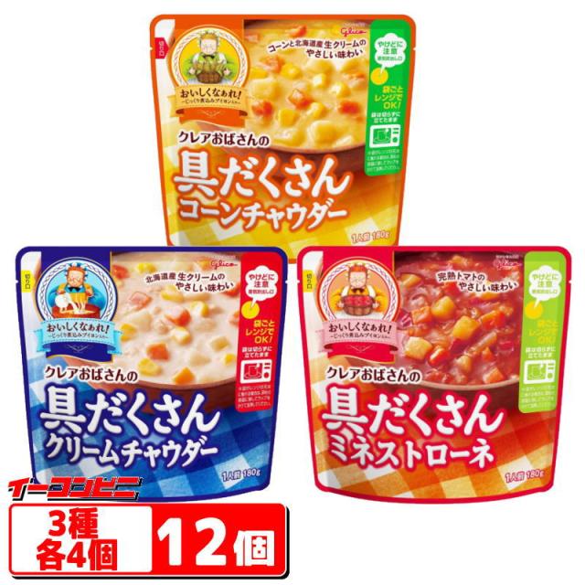 江崎グリコ クレアおばさんの具だくさんスープ 180g 3種各4個セット(計12個)レンジ対応 レトルト