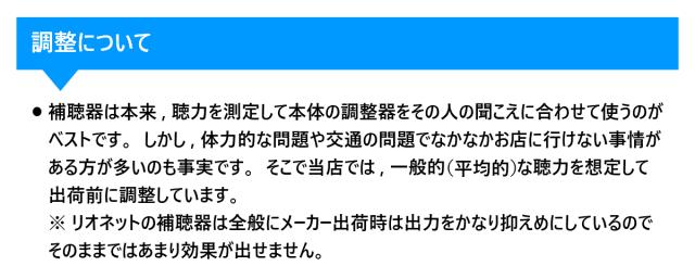 ● 一般的な難聴の聴力を想定して調整した状態の補聴器をお客様のもとへとお届けします。