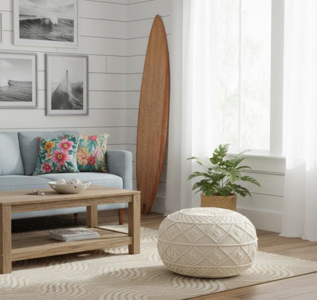 モロッコで昔からプフ(POUF)と呼ばれるソファクッション。ひもを結んだり、編み込むことで美しい模様を生み出すマクラメ編みで作りました。