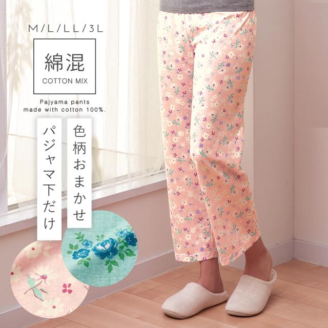 パジャマ ズボン レディース 綿100% 春夏 花柄 綿 コットン 薄手 下だけ ルームパンツ 下だけ花柄パジャマ M L LL 3L 大きいサイズ ゆったり ミセス 婦人 シニア 入院 病院 メール便対応