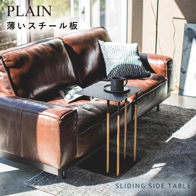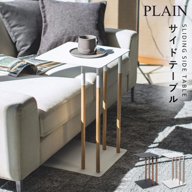 サイドテーブル おしゃれ 北欧 ミニテーブル 白 黒 ホワイト ブラック ソファ ベッド リビング スチール 木製 シンプル ゴミ箱 収納 差込みサイドテーブル プレーンPLAIN 山崎実業 テレワーク メーカー直送