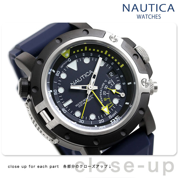 正規品 7年保証キャンペーン ノーティカ ポートホール 48mm クオーツ メンズ 腕時計 NAPPRH014 NAUTICA PRH PORTHOLE アナログ ネイビー ◆ノーティカは1983年にニューヨークで誕生したアメリカンライフスタイルブランドです。モダンで洗練されたマリンスタイリングを得意とし、その魅力をあますことなく表現したノーティカウォッチは、世界最大級の時計会社グループによる革新的な最先端技術がもたらす高品質・高性能を併せ持っています。 船舶の窓をイメージした、スポーティーなデザインデザインが特徴のモデル。5時位置に温度計、インサークルで深度計を表示するなどダイビング専門の機能も搭載しています。