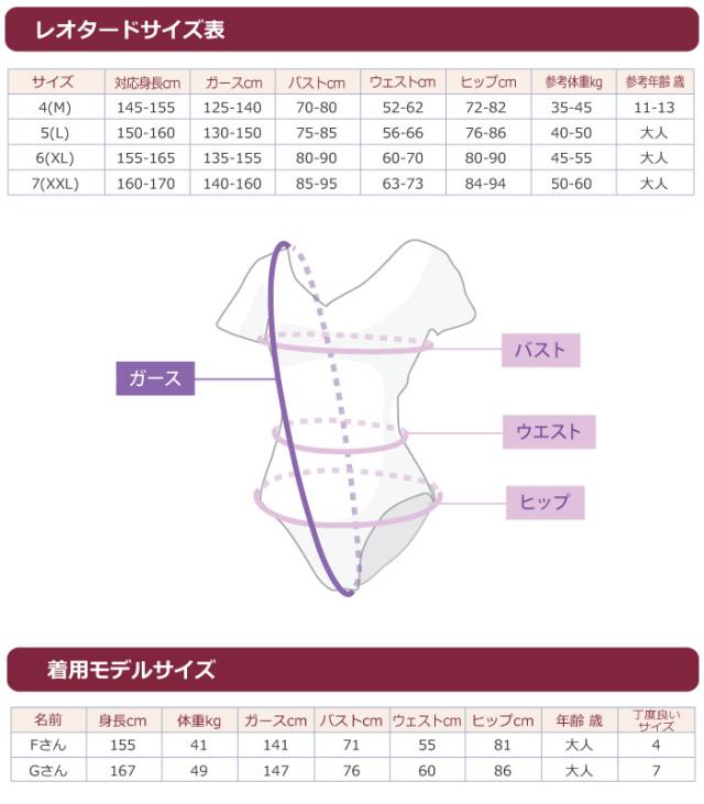 ※こちらのレオタードは、生地にサポート力がございます。 体格がいい方は1つ大きいサイズをお選びください。