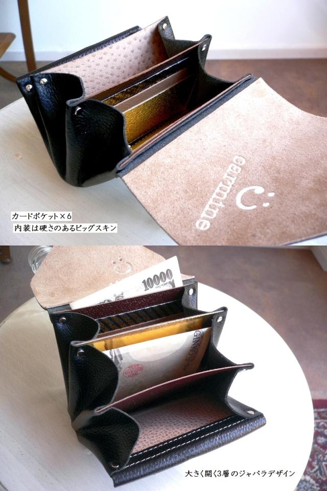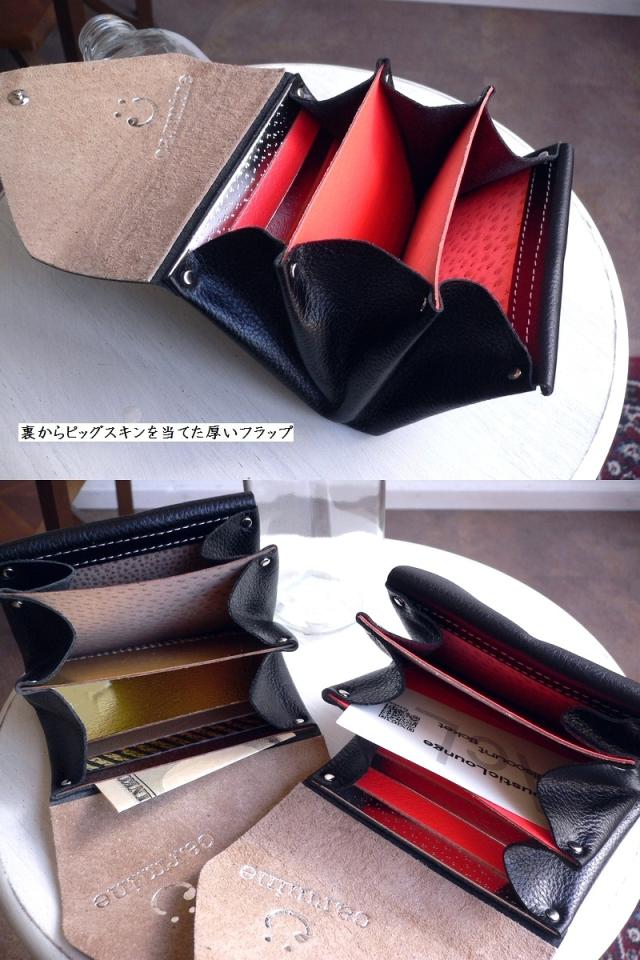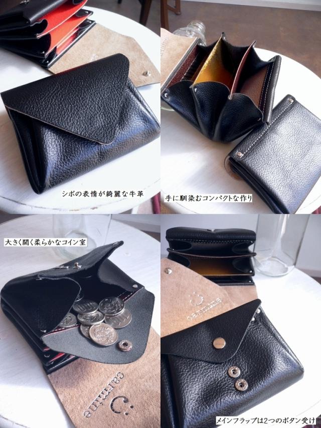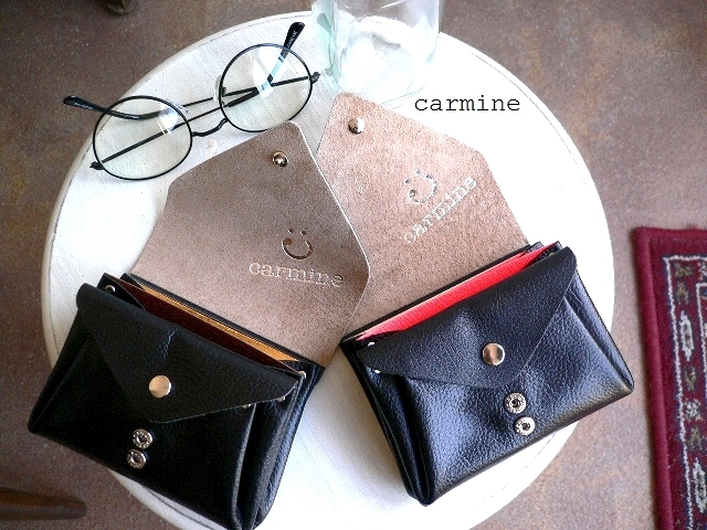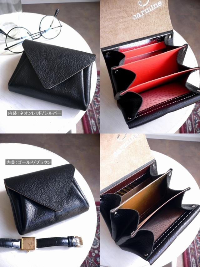 carmine カーマイン ブラック レザー ミニウォレット 折り財布 BMW ネオンレッド/ゴールド