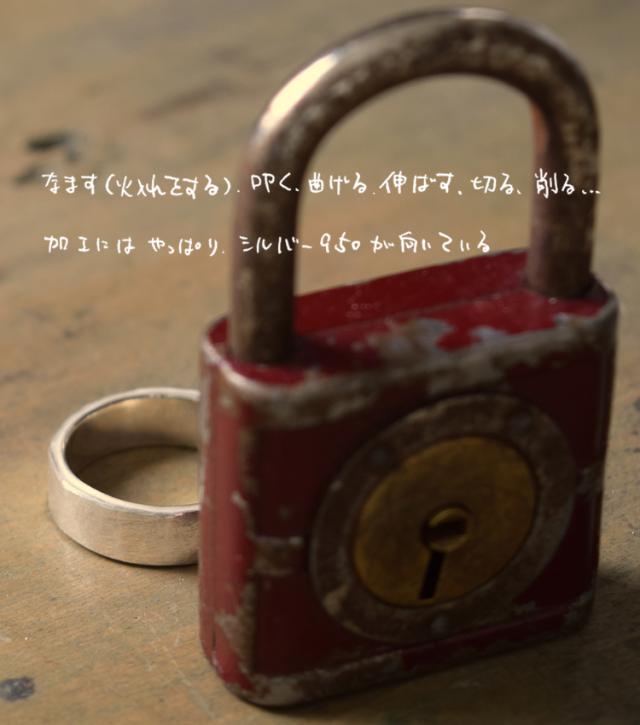 ※シルバー950は、空気中の成分や汗に反応してくすんだり黒ずんだりする性質があります。お使いいただくうちに古びたアンティークジュエリーのように変わっていく色の風合いを楽しむこともできますし、綺麗な光沢を楽しみたい場合は磨き布や研磨剤でお手入れすればピカピカの状態に戻る味わい深い金属です。 個人差はありますが着用始めでは稀にシルバーに接している部分の肌に黒く色をつけることがございますが石けんで水洗いすると落ちます。しばらくお使いになると色移りはなくなります。