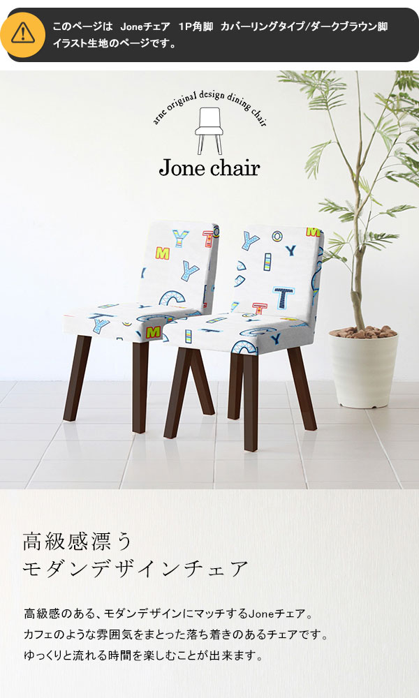 Joneチェア 1Pカバー角脚 DBR脚 イラスト生地