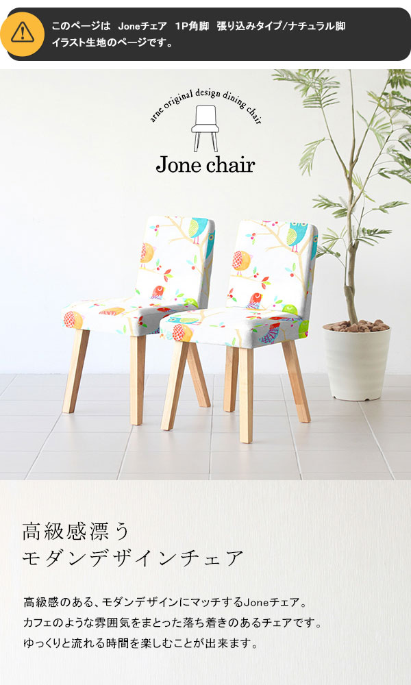 Joneチェア 1P角脚 NA脚 イラスト生地