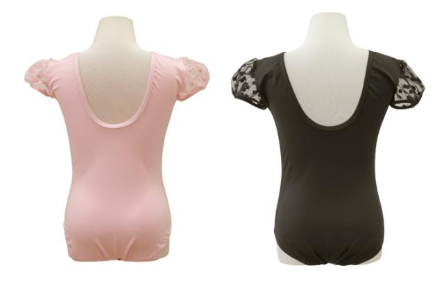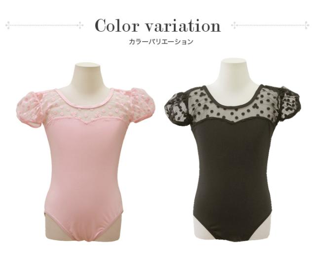 バレエ レオタード 子供用 スカートなし ジュニア 【Ballet-i】小花柄パフスリーブレオタード 刺繍レース おしゃれ キッズ レッスン着 新体操にも 格安バレエ用品 黒/ピンク 110/120/130/140