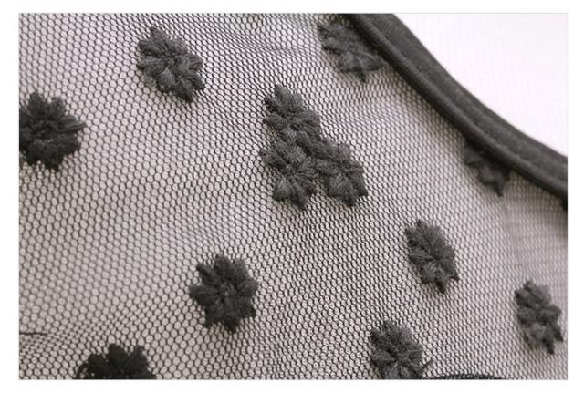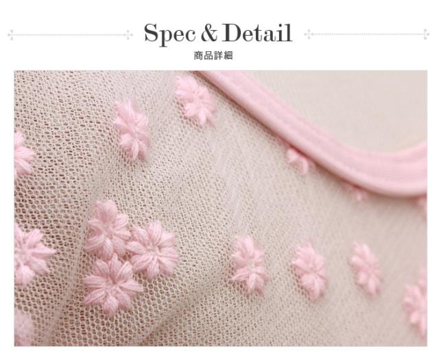 胸元のレースには小花の刺繍が散りばめられており、
