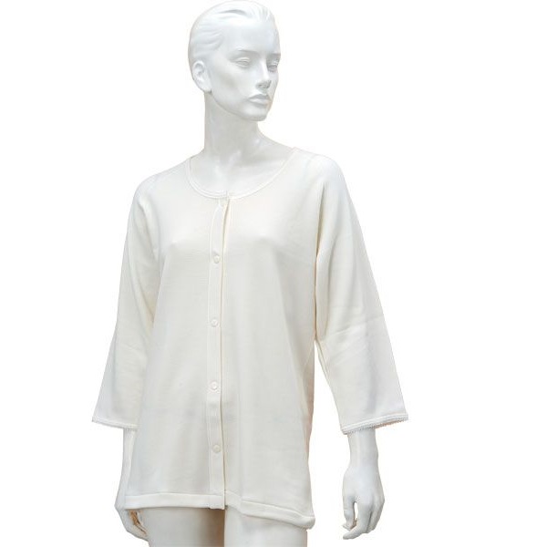 厚手 婦人 のびのびワンタッチ肌着7分袖 ホック付 BM6F オフホワイト M-L 秋冬用 神戸生絲