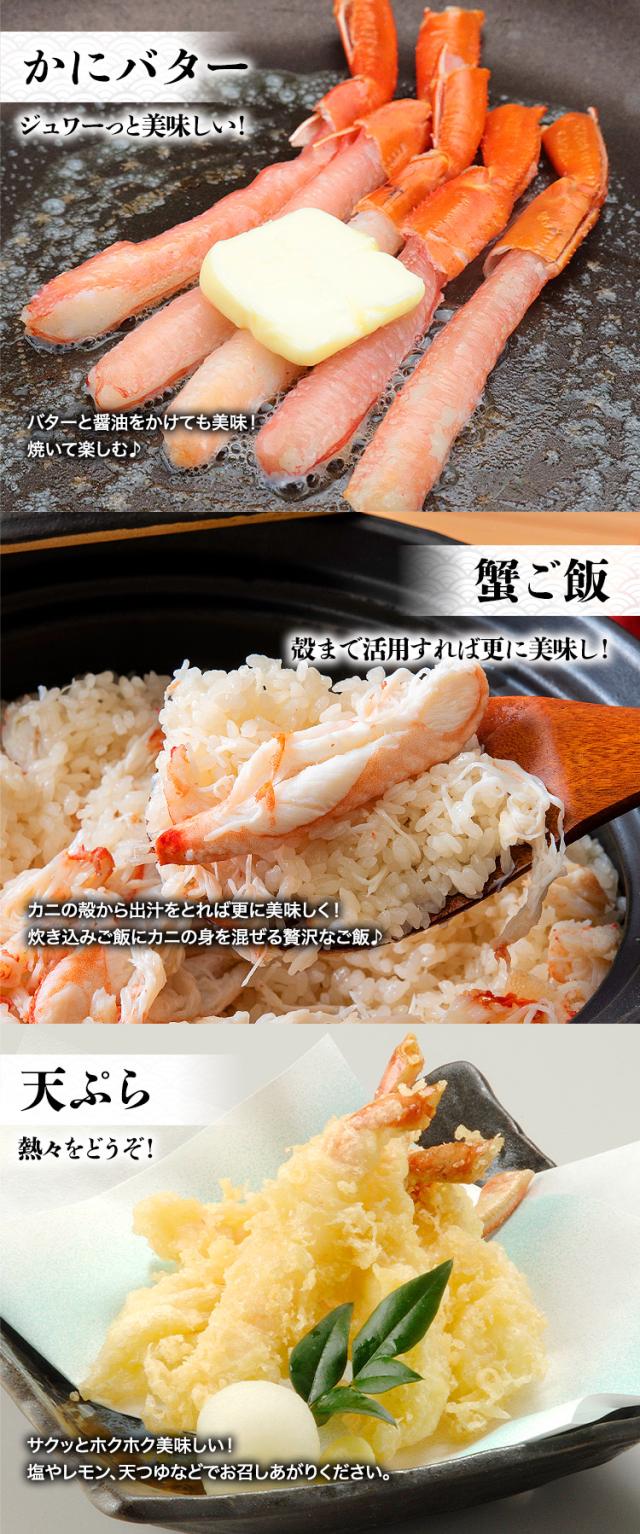 おすし、サラダ、蟹チャーハン、天婦羅などアレンジできます。
