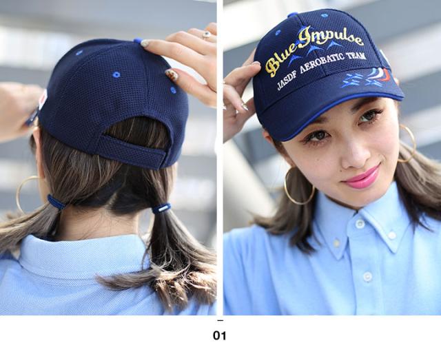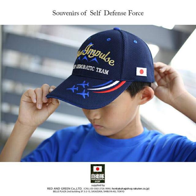 防衛省 自衛隊 グッズ ブルーインパルス エンブレム 帽子 ローキャップ ジュニア用 男の子 キッズ 子供用 レディース CAP 航空自衛隊 空自 日章旗 日本国旗 金刺繍 6機編成 カラースモーク 刺繍 紺 PX品 C57-TZ-NJ