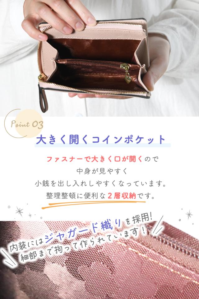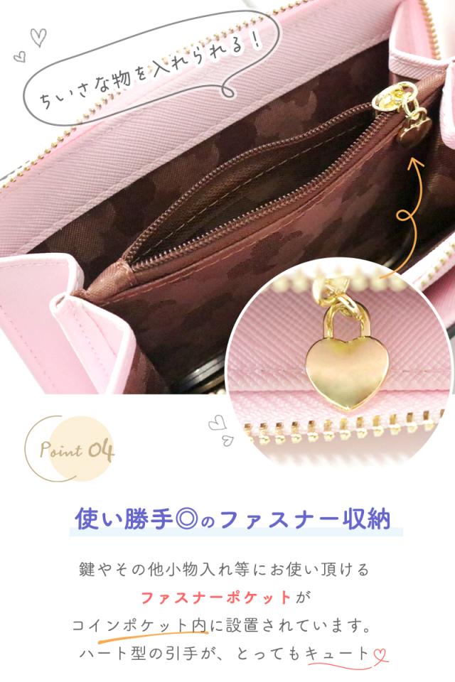 - 1月12日に注文して31日に届きました。 ずっと長財布を使っていて鞄を小さいのにすると財布しか入らないのでその時用に買いました。 可愛くてファスナーもスっと開閉出来るので使いやすそうです。