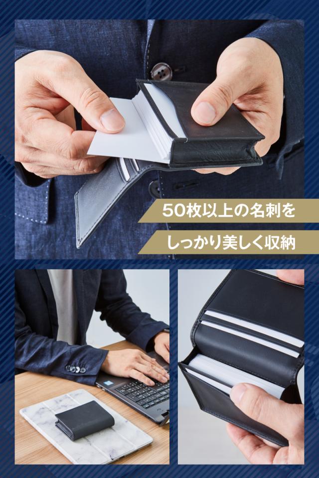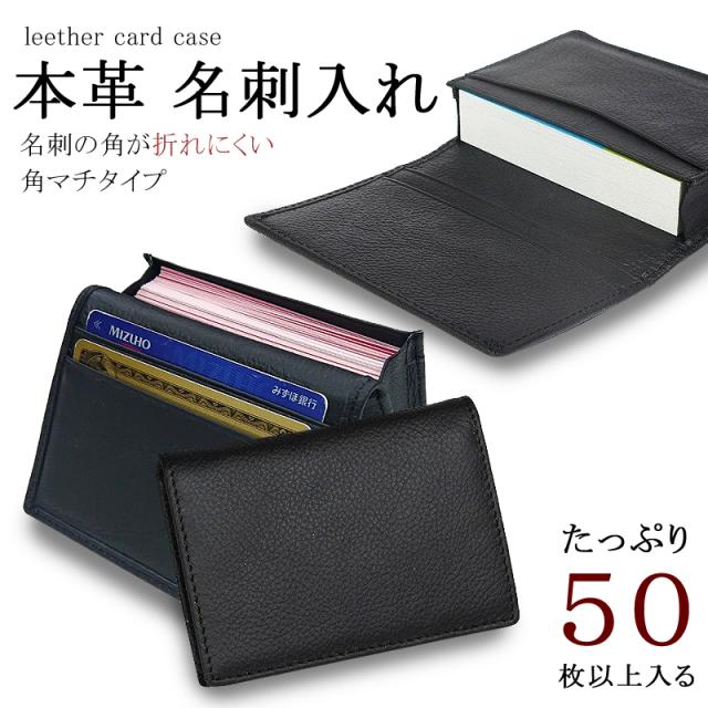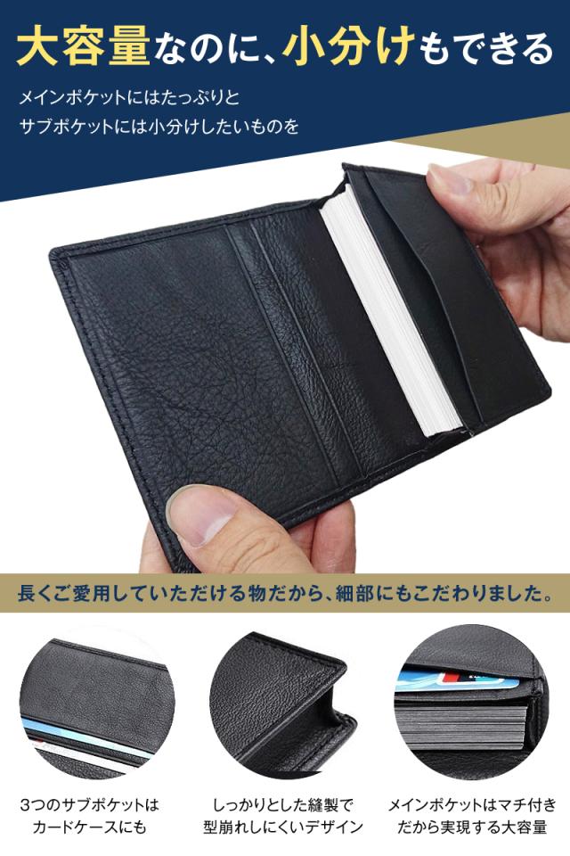 名刺入れ 本革 牛革 50枚収納 メンズ 40代 50代 シンプル 大容量 男性 ビジネス カードケース 黒 ブラック 無地 レザー カード入れ スリム 薄い レディース 送料無料