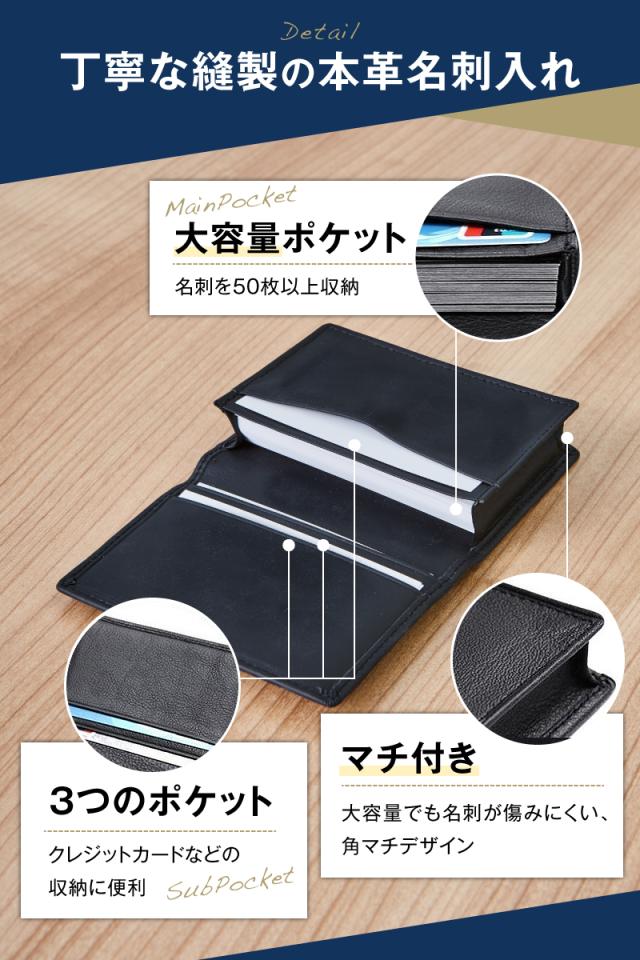 名刺入れ メンズ ブランド レディース カードケース カード入れ 本革 革 皮 レザー 高品質 大容量 50枚 ビジネス シンプル おしゃれ かっこいい カジュアル 二つ折り 名刺 カード カード収納 ICカード 定期 ポイントカード パスケース 男性 女性 プレゼント ギフト 父の日 母の日 クリスマス クリスマスプレゼント お祝い 内祝い 入学祝い 就職祝い 快気祝い 就職 送別 ビジネスマン OL 会社 誕生日 誕生日プレゼント 記念品 会社記念品 黒 ブラック 使いやすい 送料無料