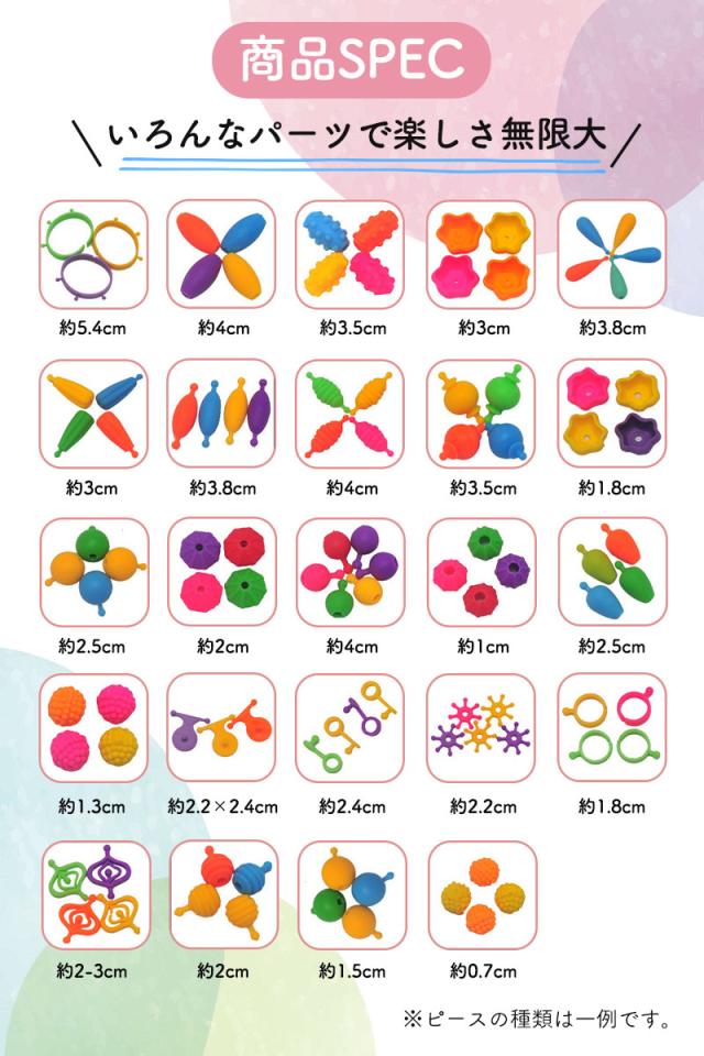 カラフルなカラーがとても可愛い立体ビーズで、知育玩具として最適です。