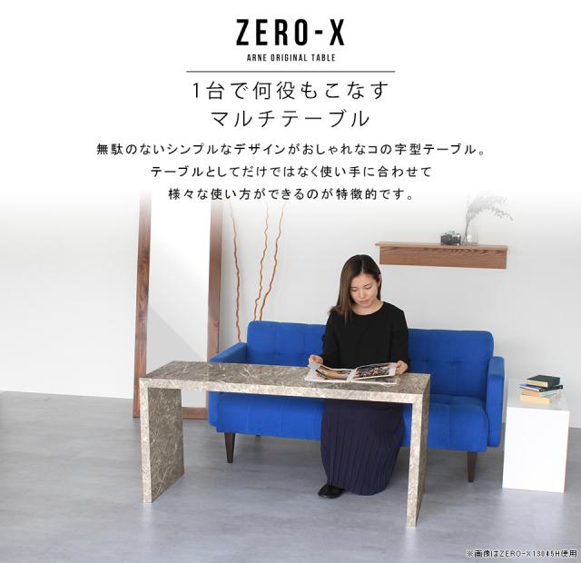 サイドテーブル ナイトテーブル 薄型 デスク 大きい スリム コの字 テーブル ダイニングテーブル 低め 鏡面 グレー Zero-X 13540H GS ●