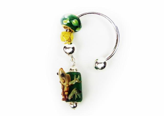 キーホルダー アンティーク調カエルトップ緑銀 蜻蛉玉緑 金 Misa
