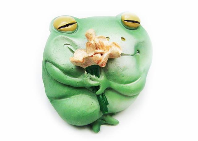 ミニ樹脂オブジェ 告白蛙 カエルとお花