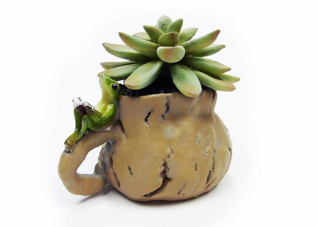 多肉植物と蛙大 本読 ミニ樹脂オブジェ フチカエル 8x9x7cm made in china 可愛い多肉植物のオブジェに可愛いカエルがくっついた「フチカエル」シリーズ。