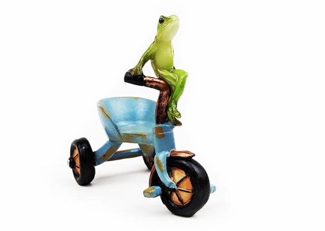 三輪車やライター、懐中電灯、ランプなどレトロアイテムとカエルオブジェのヴィンテージ風シリーズ。