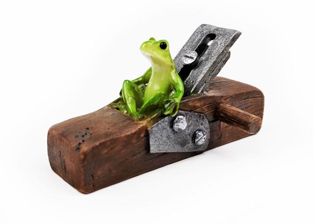 カエルオブジェ アンティーク調カンナと職人蛙