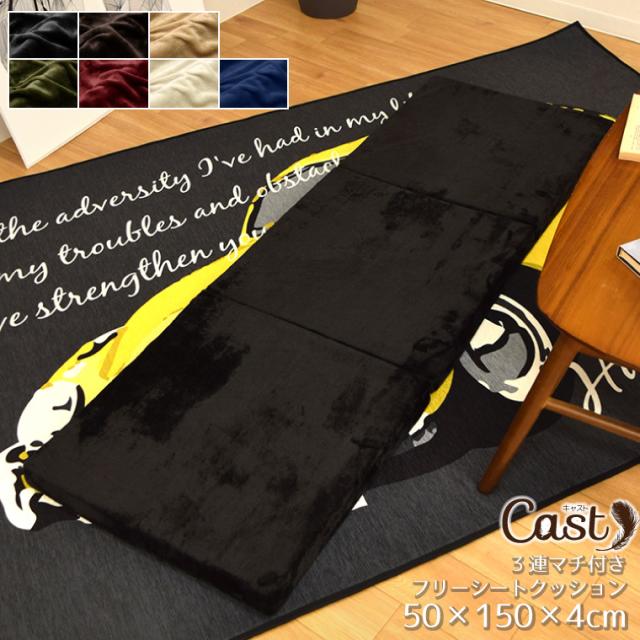 クッション フリーシートクッション 約50×150×4cm マチ付き フランネル 無地 シンプル おしゃれ カー用品 車 ごろ寝 お昼寝 在宅勤務 オフィス ロングシート キャスト CAST