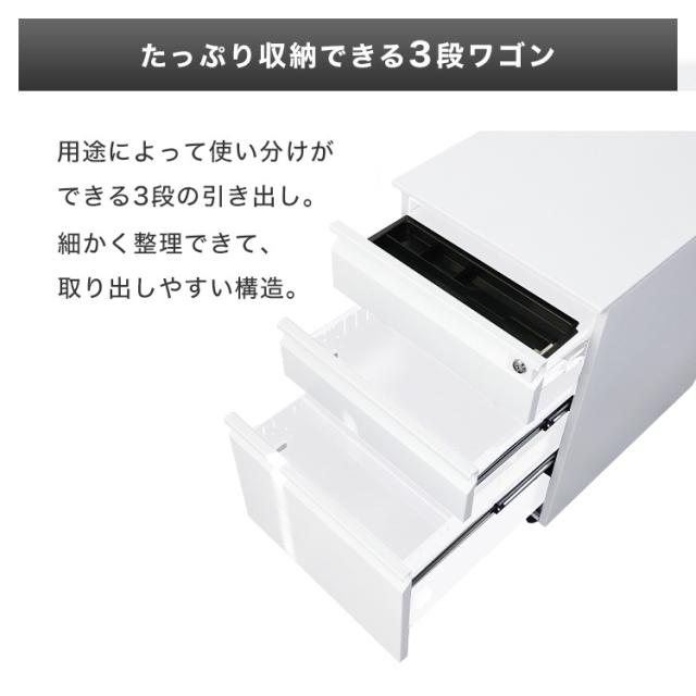 デスクキャビネット 大容量 3段 引き出し キャビネット オフィスワゴン ホワイト オールロック キャスター付 オフィス家具 サイドワゴン デスクワゴン 引出 デスク オフィス 収納 事務机 足元 デスク下 白
