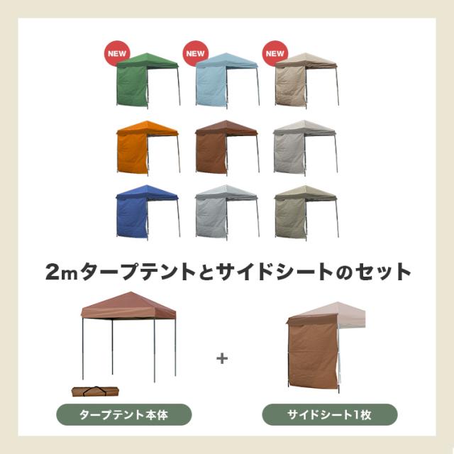 タープテント 2m×2m ワンタッチ テント サイドシート付き タープ 日除け 撥水 耐水圧 1200mm 頑丈 紫外線防止 UVカット ワンタッチテント ワンタッチタープ UV加工 簡単 大型 軽量 日よけテント おしゃれ アウトドア キャンプ 海 BBQ 送料無料 MERMONT WEIMALL