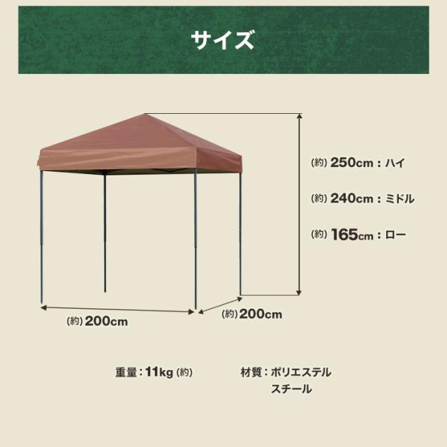 コンパクトなサイズ200×200cmのワンタッチタープテントです。