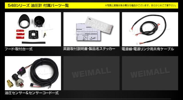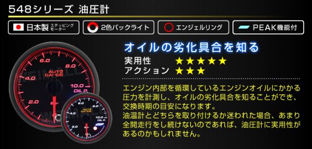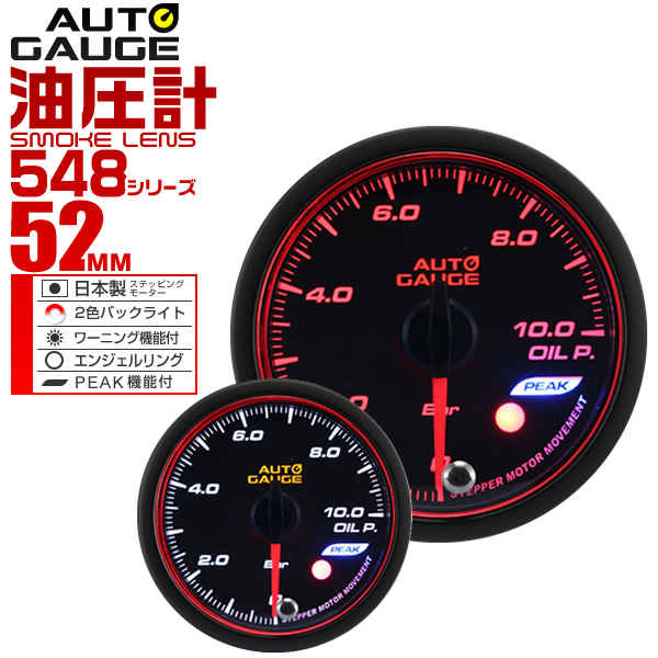 油圧計 52Φ 52mm オートゲージ 日本製モーター 車 メーター 548シリーズ 精度誤差約±1%の正確な追加メーター Autogauge 追加 後付け モーター エンジェルリング スモークレンズ 送料無料 WEIMALL