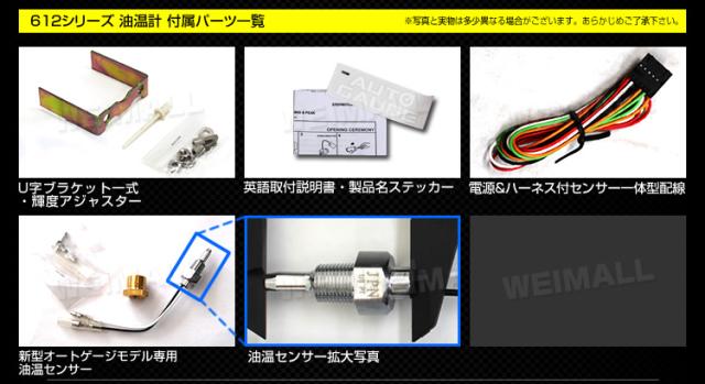 油温計 オートゲージ Autogauge 52Φ 52mm デジタル 車 メーター デジタルLCD デジタルメーター 追加メーター 後付け 日本製モーター ホワイト グリーン 2色バックライト 612シリーズ 送料無料