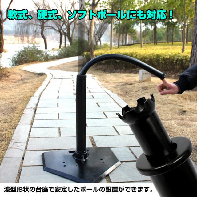 ■波型形状の台座で安定したボールの設置ができるので軟式、硬式、ソフトボールにも対応!