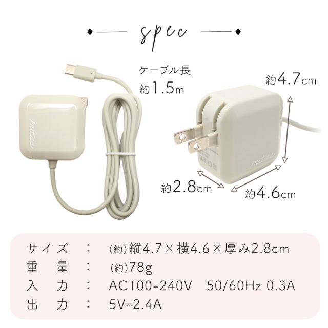 充電器 タイプC 最大2.4A スマホ充電器 ACアダプター Type-C Android 携帯充電器 ケーブル コード 一体型 タブレット au 急速充電器 スマートフォン アンドロイド 充電 急速充電 AC式充電器 ACチャージャー 電源アダプター 高速充電 充電機 HW-T24AC mitas