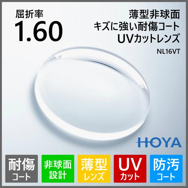 眼鏡 メガネ 度付き キズに強い レンズ 紫外線カット UVカット 薄型 非球面 1.60 HOYA NL16VT メガネレンズ