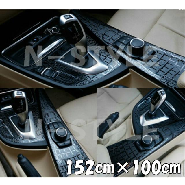 カーラッピングシート 152cm×100cm ワニ柄ブラックラッピングフィルム 耐熱耐水曲面対応裏溝付 カッティングシート クロコダイル調レザー