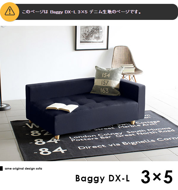ローソファー 2人掛け 脚付き カウチソファ 片肘 寝椅子 カウチ ローソファ ベンチソファー ベンチ Baggy DX-L 3×5 デニム □