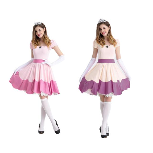 ピンク ドレス お姫様 コスプレ ピンク ワンピース 半袖 パフスリーブ オペラグローブ 王冠 カチューシャ コスチューム コスプレ用品 ハロウィン 可愛い コスプレ お嬢様